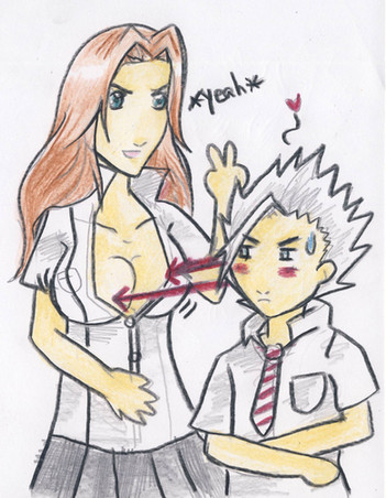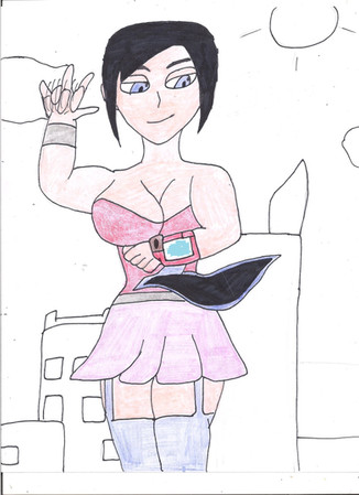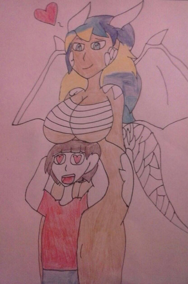 Kaya: *Grabs him and picks him up* I'm just a girl that loves to play card games and punish bullies like you. And lucky for me I left my deck at home. *Places him between her boobs*