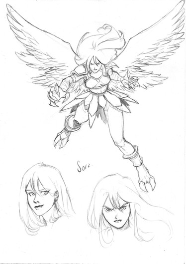 She looks very cute, I prefer your design over the one in the manga. I really love those expressions, they fit her very well. And geez, the way you did her wings is just awesome!Β