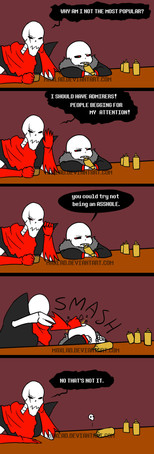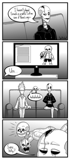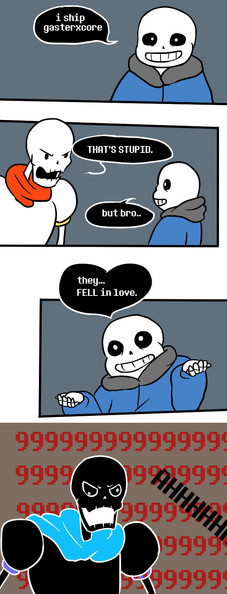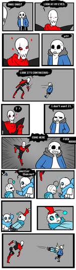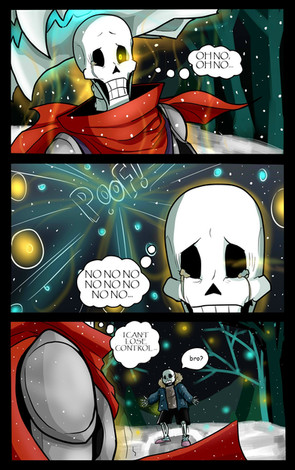 Doesn't that mean Uf!Papyrus killed his undertale self? Β And that he's trying to kill the same skeleton he just handed his laptop to? Β Sleep with your eyesockets open Sans. Β Keep them open.