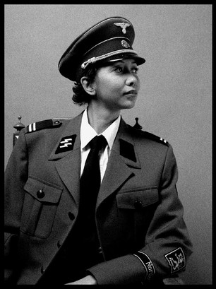 Most likely some wife wearing her husband's uniform for fun.