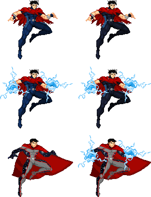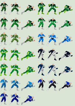 I like the first set of sprites. I wish he could be fully fleshed out to be a complete character for the MUGEN fighting game engine