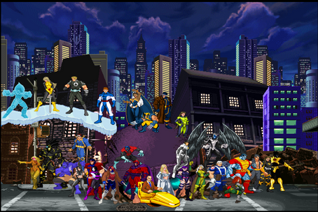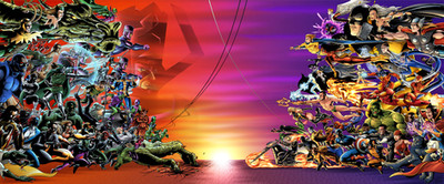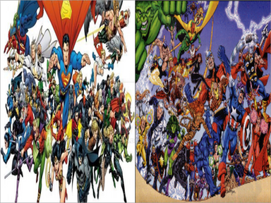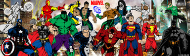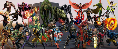 Cordial greeting. I would like if someone I could collaborate with names of the heroes or villains, they come out in this image, so no matter whether you can do a list with the VS of the DC/MARVEL characters according to the image.Aradesco your attention and collaboration.