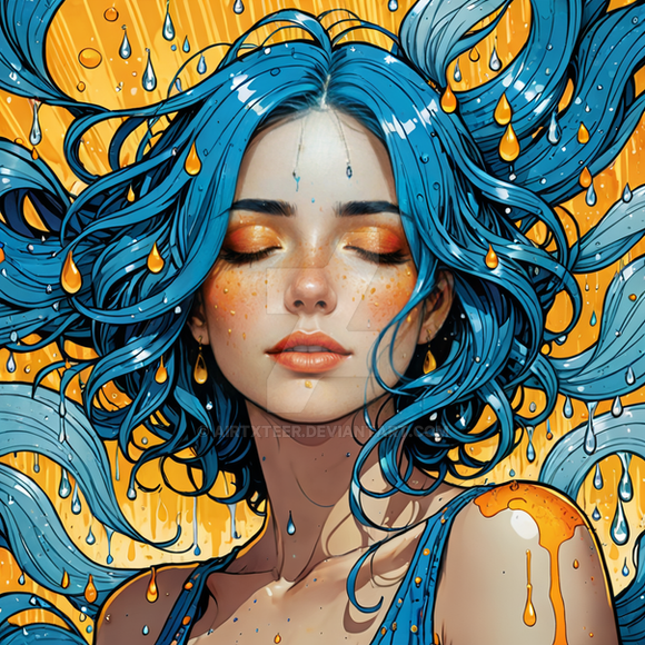 #bluehair #colorful #enjoying #relax #seductive #sexy #waterdrops #woman #youngwoman