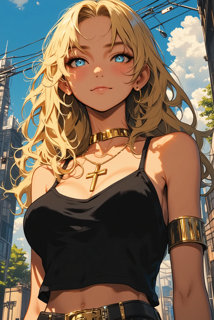 #digitalart #anime #animegirl #digitalpainting #black #blonde #blueeyedgirl #captivating #cinematic #cut #girl #illustration #low #pretty #woman