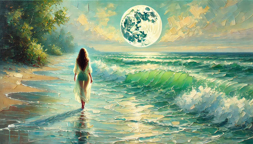 #beach #sea #drama #reflection #beauty #sky #impressionism #moon #moonbeam #pretty #woman