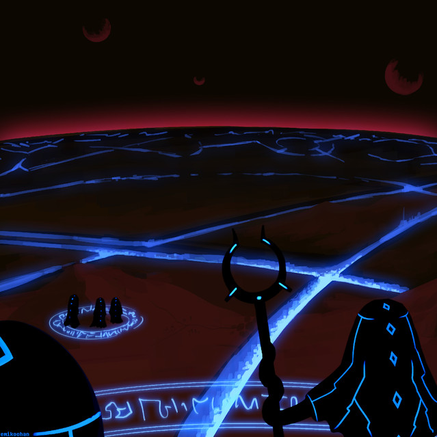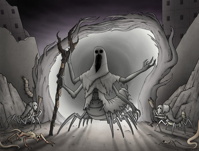 When commutating with influential people of Assembly, Grand Network usually utilizes remotely controlled, humanoid bodies known as "mediums ". However, its associates of high ranks often prefer to converse with their sovereign in person, to the extent of which this phrase can be even applicable to such an entity. Here, you can witness a nicrian moderator talking to the group of three servers.In their default state, all servers look like large black monoliths – but as you can see, they would often sprout additional appendages from their surface for various uses.