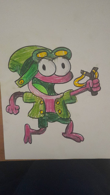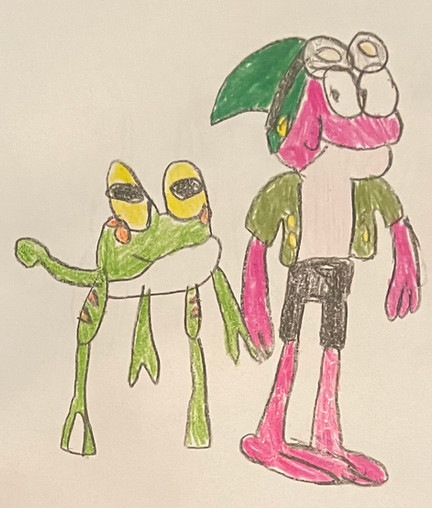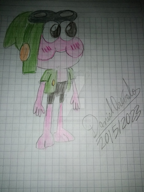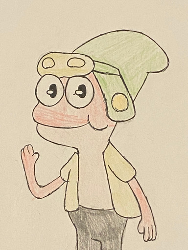 English :My first drawing of the character Sprig from the Disney series "Amphibia" 🐸