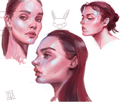 -Build from big shapes to details. Do not put the highlights til the end, its hard to accept but some "hacks" to make the portrait look good only would work if the base underneath it is good as well D: