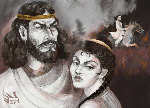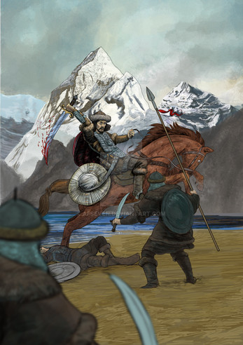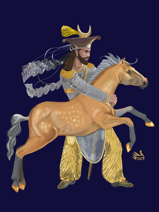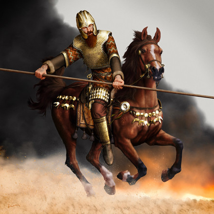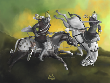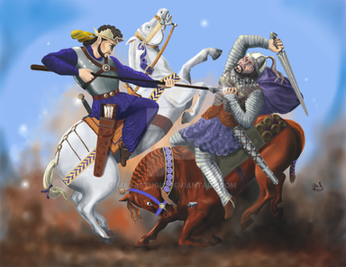 A high rank nobleman fighter from house of Suren (according to the family badge) in single combat with a Parthian high rank army officer. This digital art was inspired by Firuzabad rock relief depicting the victory of Ardeshir Sassani in 224 A.D.Related content