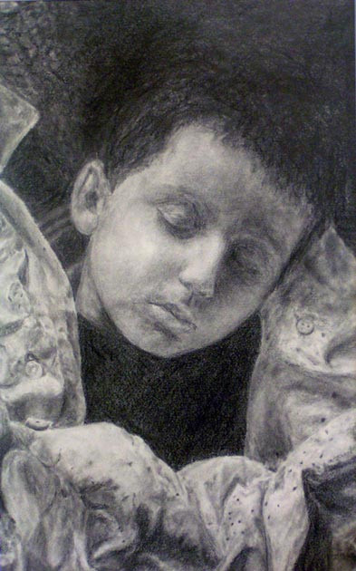 Just wondering, what made you decide to draw something like this - did you see a kid like in this picture or did you just think it up. I myself cannot draw things in my head - they come out terribly distored but I can draw things/people/landscapes in front of me.