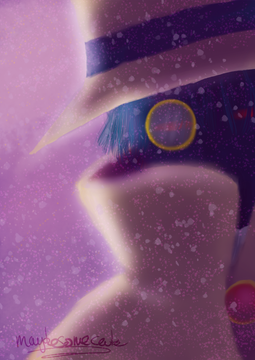 Wow, it looks like a painting, which is good. XD I love the whole effect, I mean, there's so much nice detail to take in everytime you look at it. It's not just "OH HERE LEMME LOOK, IT'S A DIMIMI PICTURE, HOKAY. FAVE. GOODBYE." It's a true work of art that captures the pair's relationship well, and there's so much amazing detail. I love how soft everything around them is, and the eyes and hat on Dimentio are so well done. I also love Mimi's hair, the detail of each strand. You did a wonderful job! 83