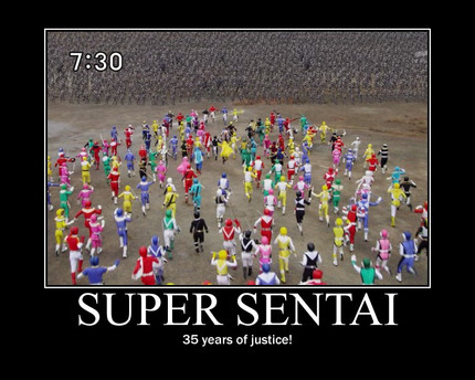 You know, there was a huge Super Sentai team up in one picture. And in the bottom, it said: