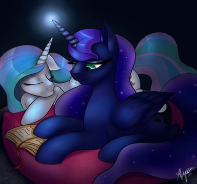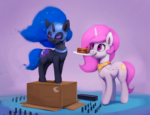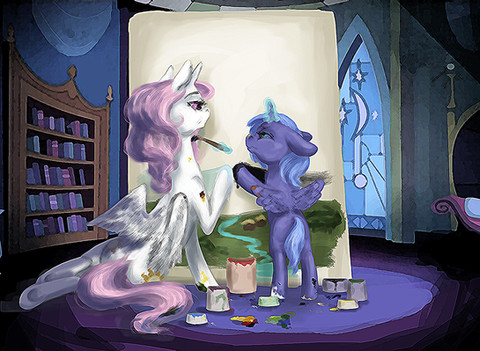 "Am I doing everything right?"-Little Luna asked excitedly"Yes, everything is just fine, sister"-A pony with snow-white fur and a beautiful pink mane answered her