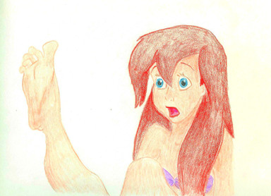 I love this classic pose of Ariel!! Β I always thought it wouldβve looked cool to see her with webbing between her toes...a cruel reminder from Ursula of Arielβs aquatic heritage. And another thing sheβd have to explain to Prince Eric