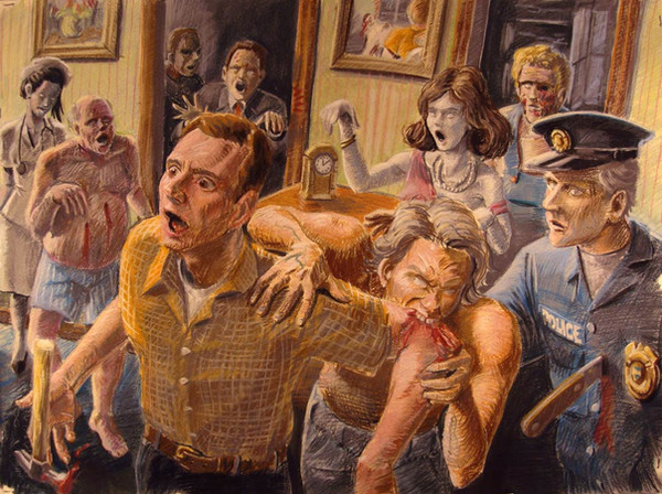 I can't stop imagining what that angry guy is shouting. "You must have tomatoes for brains!" I love this piece.