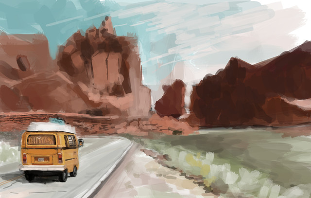 I like the contrast between the Van and the scenery behind it.