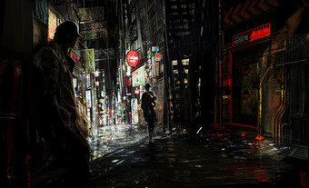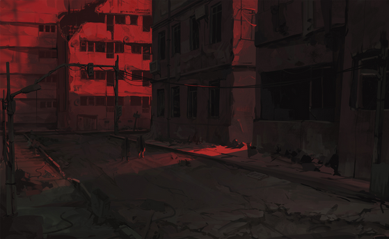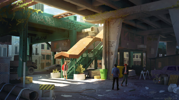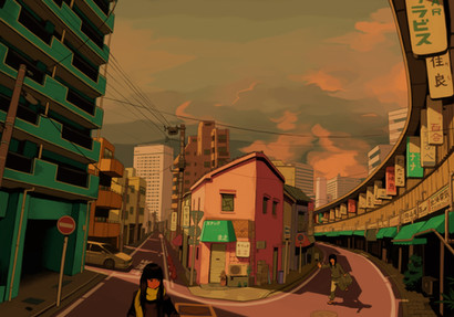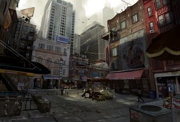Very nice art work. I like the urban scenery and the coloring. The buildings on the BG are fantastic. Well done!