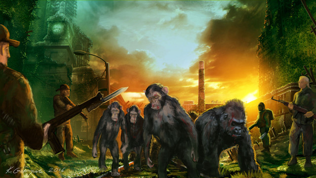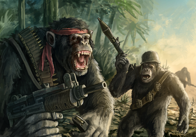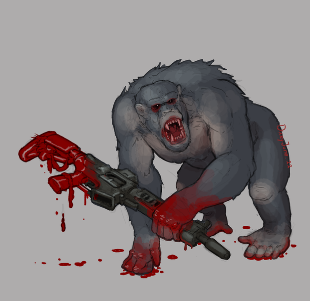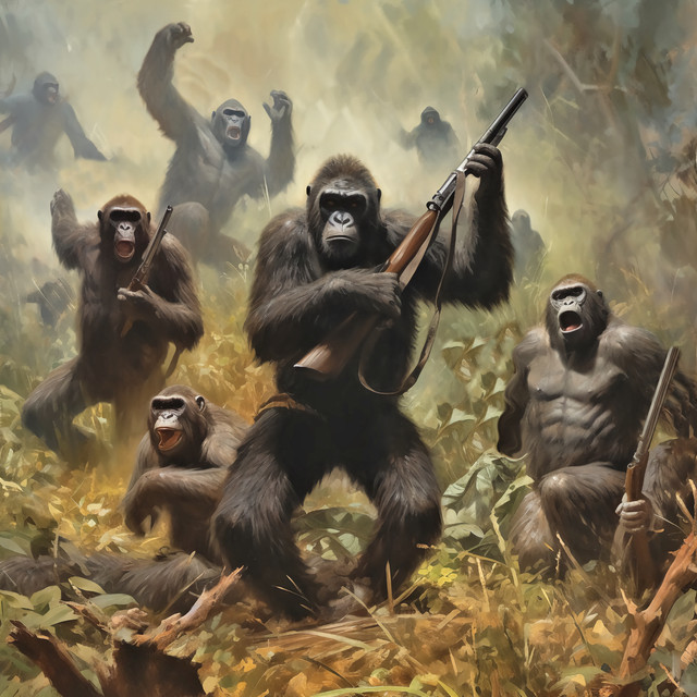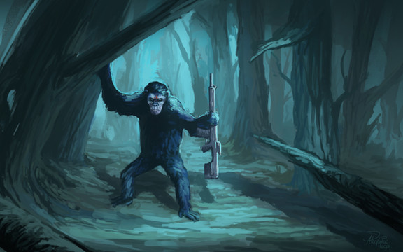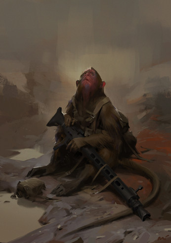 The darkness of the jungle times the monkey on the right of the gun reeeeally makes this sad to me. Dig