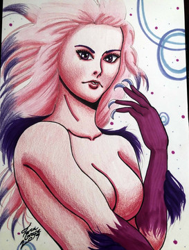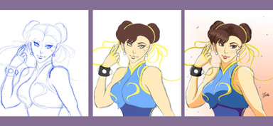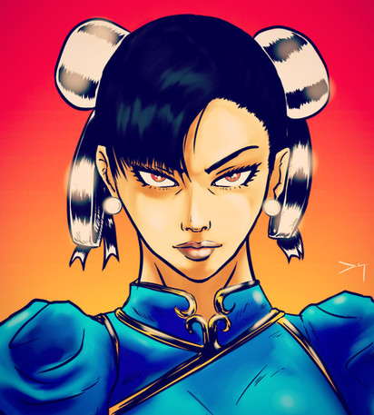 I always liked how Chun-Li appeared in her World Warrior SF II portrait, so I wanted to draw it, but still put my own influence on it. It's simple yet has an air of regal elegance and femininity among a very masculine cast. Plus, it's so fun to kick ass as a very pretty and hardcore female fighter, haha!This marker style is a lot of fun to use and is a different change of pace from working with color pencils.