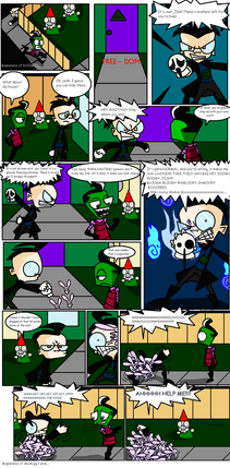 "cuidado alla abajo, casi le dan a zim"