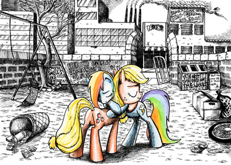 Aw poor, pinkie Pie. Flash Fire: You know for how up beet Pinkie is I would have never thought she would have originated from a place depressing as this, But then again I don'y no a soul who is not filled with joy after seeing the results of a sonic rain boom. Still thought who would have guessed that a family with Pie in their last name would be running a rock farm.