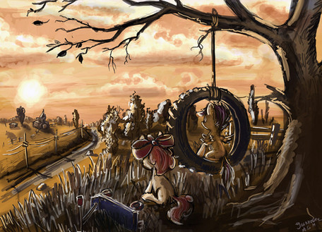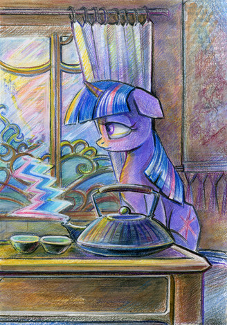 Очень старая картинка, котурую дошли руки дорисовать. Результат не нравится, но дальше мучить её смысла нет.Пинки за несколько месяцев до радужного бума, как-то так