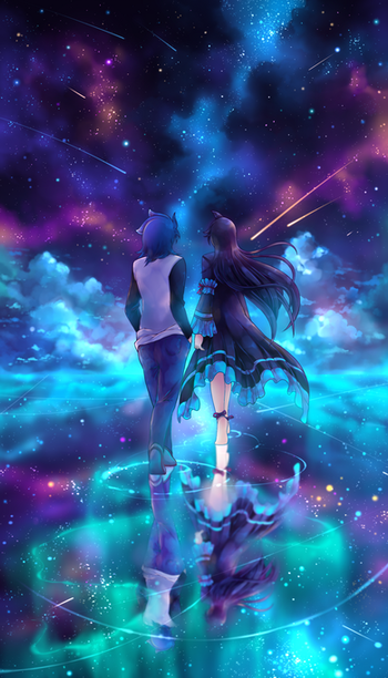 #anime #bubble #couple #forest #lake #run #sky #star #tree #signature #woods