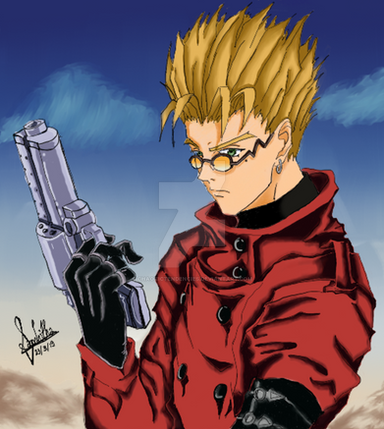 *glomps*vash!!!! really great use of color and perspective on the gun. A few more lights and darks will help perfect it!! sorry, i'm really into details. Really great work though I love it. (especially on the gun put an few more highlights on it and the glasses. Just a suggestion. Ganbatte kudasai(please do your best or work hard)