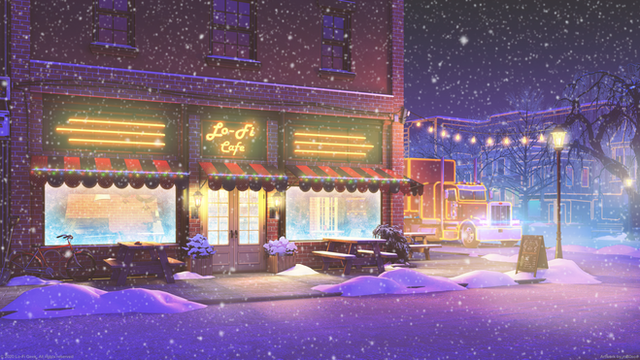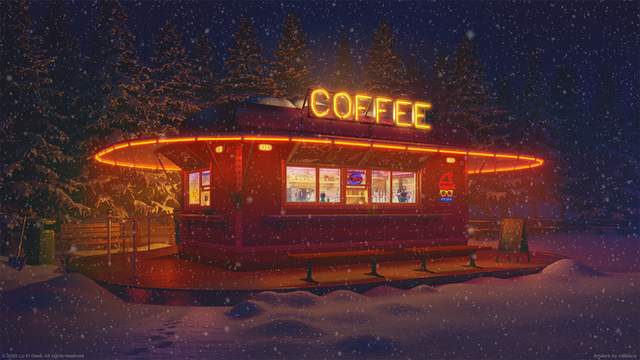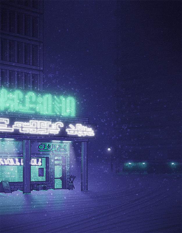 #neon #snow #coffeeshop #lofi #snowfall #winter #winterlandscape #lofiaesthetic