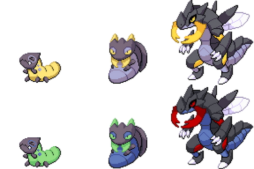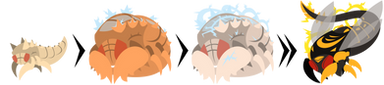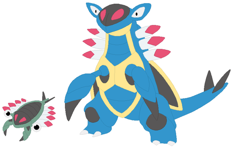 Info: After evolution it gains a ferocious dagger-like pair of arms & tail that it uses to tear its foe to shreds. It sheds its armored skin once a month.
