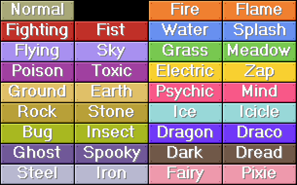 the font used in this is ripped from the original type chart I only just put in my types & gave them distinguishing colors.