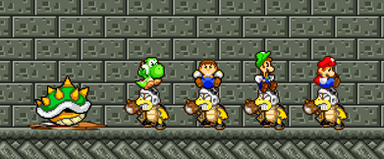 First you've heard of "Kick the Baby" and "Kick The Cheat". Now how about Kick the Toad? no. Well that's what Mario did anyway.Sprites by