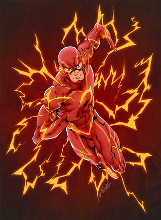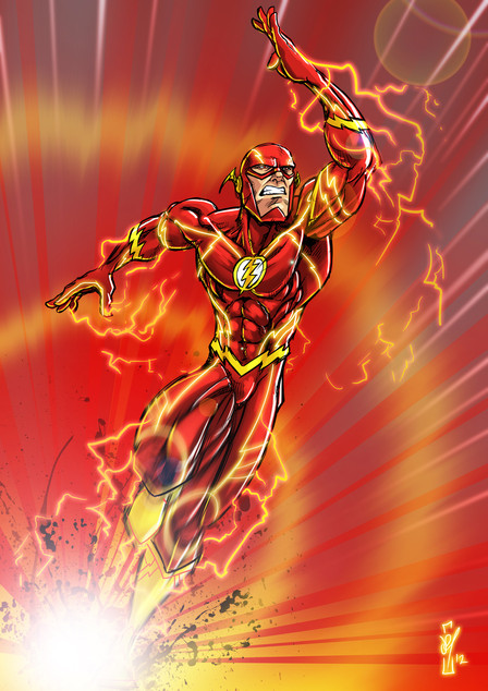 The Flash is always one of my favourites, because of the colour scheme and I love what you did here. However, the Flasher sort of seems secondary to the background. I personally feel he should literally burn our eyes, popping out of that background, but instead the fractal is brighter than he is. Bugs me since he's in the foreground and it's behind him...