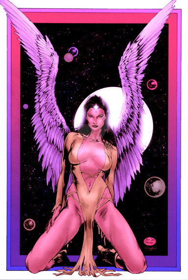 I painted the piece with airbrush on illo board - no photoshop or digital work. She is all hand done.