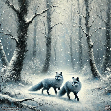 A Pastblast from 2003, "Manor Foxes" was a Christmas card design, and also one of my early attempts at painting wildlife. In this one, a pair of red foxes take an evening romp in the snow near a Highlands manor house.Related content