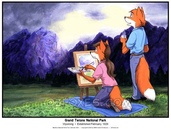 From our 2020 National Parks Tour calendar: Marsha and BJ celebrate the American national park system with a stop for a selfie in front of Old Faithful in Yellowstone.Related content