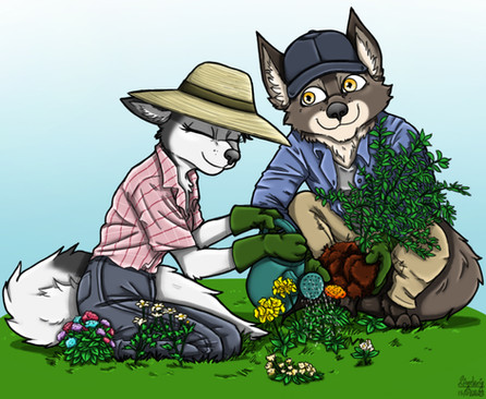 #anthro #anthropomorphic #cartoon #fox #foxes #garden #gardening #play #ride #wheelbarrow