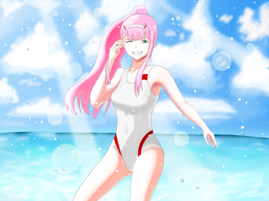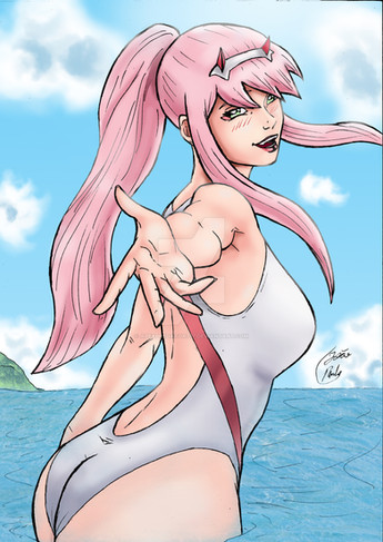 Zero Two is pretty sexy in that white swim suit!