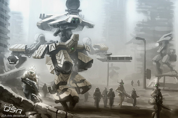 Imagine having to wait in traffic while the mechs tromp by.