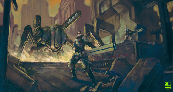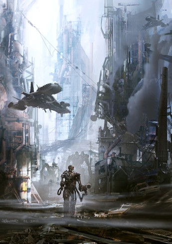 beautiful how you did the slight fog blurring out the robot in the background. really gives the piece a sense of real depth