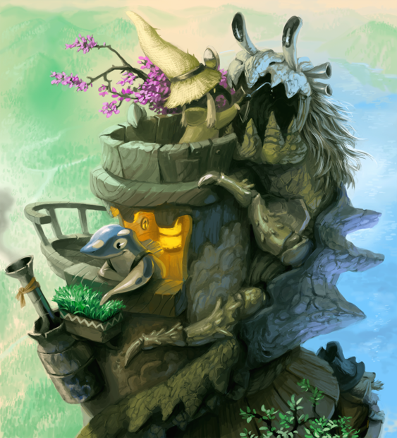 I always loved it! And I just noticed while drawing it that the legs underneath belong to a bunch of cats, which explains the symbols and the big fish on the house they are carrying.