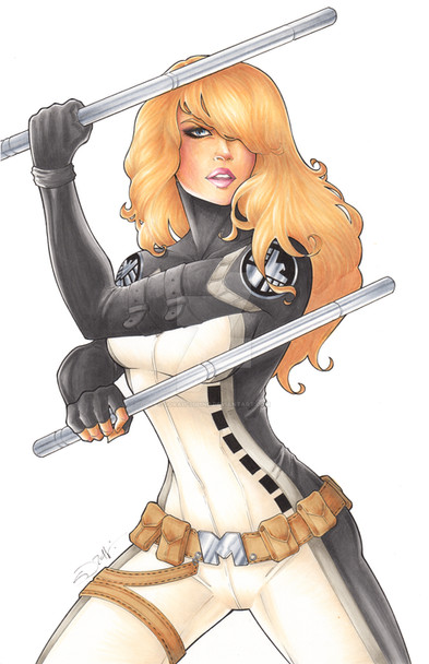 I needed to flex some coloring muscles before I embark on a few commissions (and holidays) that will take me out of circulation for awhile, so here's a quick one of Marvel's Mockingbird for the Third Rail Design Lab Weekly challenge . I went back and forth on whether to make the S.H.I.EL.D. logo background red or blue, so I figured why not post one here and the other on my Tumblr page . Now if I could figure out how to make a poly-bagged-and-foil-variant digitally, I'd be just like the comic industry.