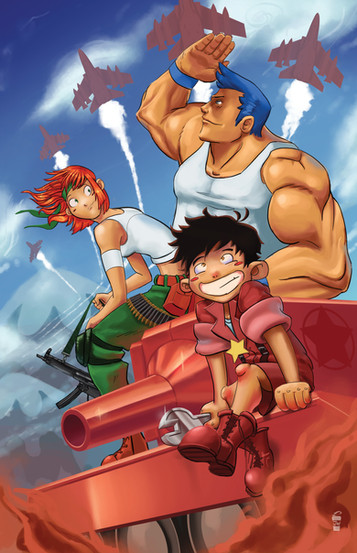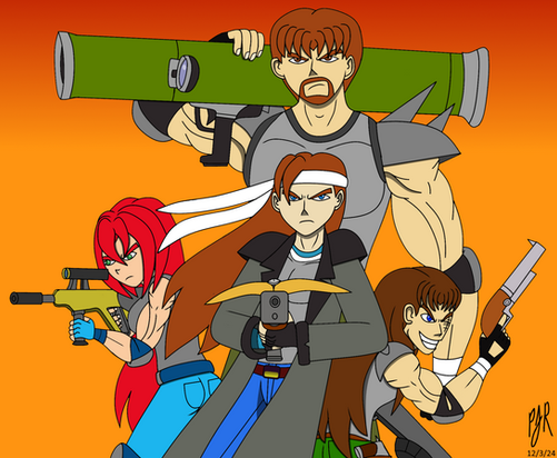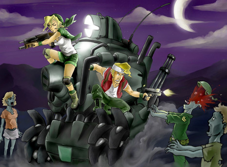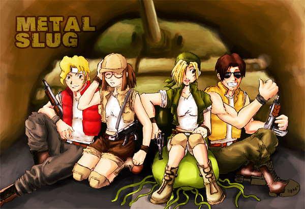 A Fan art of Metal Slug.... I Pretty Much am In Love With That Game.This is a scene from Metal Slug Three, it's the end scene where the characters are on a floating Metal slug (Tank) and one (Or all of them) throw their Pistols out to the sea.