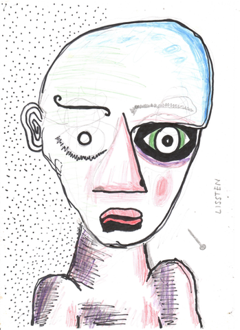 Two pages, each about 5"x7"pencil, acrylic, tape.