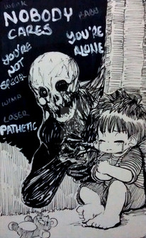 Some say that life is just an illusion while others say it's perfect, well I say it's a thing of nightmares waiting in shadows, waiting for it's chance to strike and bring reality down crushing you and your dreams. There is no escape from this nightmare, not even death can faze the beast. It'll always come back to haunt you, no matter what you do. I've been running for 10-11 years, and things won't change. It's always going to find me. You know, it's funny, because people blame others for the nightmares the follow them when it's them themselves who caused the beast to emerge. People say in just looking for attention or that I'm just over reacting. Well I'm not, every day I'm haunted by my nightmares and my past. It's really overwhelming and it's very hard to deal with. I may have a loving and caring girlfriend, friends and family but, they only dull the pain of the nightmareβs bite. Soon this small pain with turn into agony. It will be my ruin, I'm on the verge of falling into its clutches and becoming the monster people say I am. The say that I'm nothing but a monster, they say that a monster like me has no place on Earth. Well if I fall, then I guess they'll be right. Once I fall, there may be no way back, and soon enough the nightmares will consume everyone.