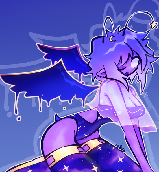 #angel #blackandwhite #blue #cute #demon #devil #galaxy #glowingeyes #horn #perspective #pose #poses #shiny #sona #sparkle #batim #practicedrawing #inksona #glowing_effect #inkqueen #inksonas #batim_oc #mclissy #mclissy_tribute