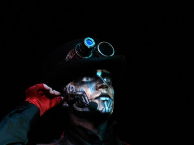 Contrat pour Party des employés du Cirque du Soleil: Maquiller le cracheur de feu en diable vert ,et ce en 35 minutes (installation des prothèses cornes incluse). La job est pas si mal malgré les cornes plutôt mal collées.Petite photo sorry.