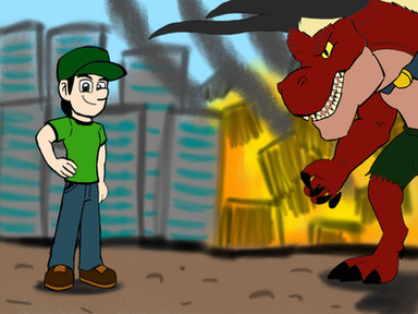 Fred turns into giant Kaiju-like reptile as Godzilla called himself Fredzilla and save Tokyo from giant bad monsters.