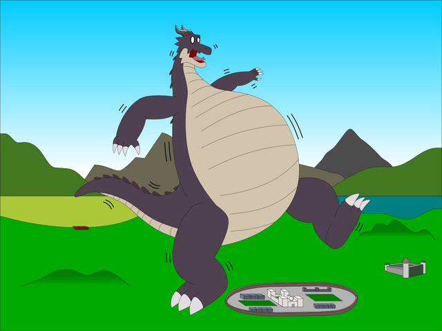 Ord eat too much food and then growing into giant and his belly be bigger as fat.