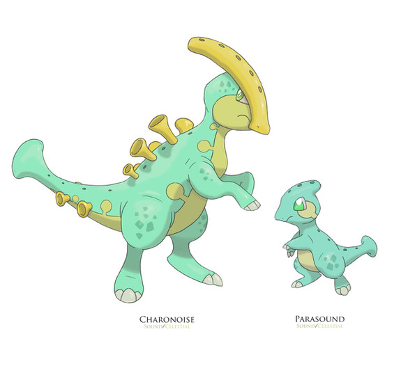 “Sirolophus, the Parasaurolophus Pokémon and evolved form of Prinsaur. It can hear the sounds from the forest with music.”